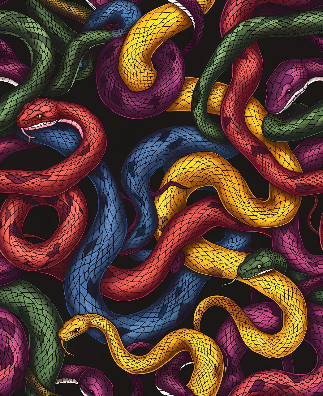 여러 색깔 뱀이 한꺼번에 등장하면 복잡한 상황, 다양한 문제, 감정적 혼란을 의미한다. 꿈에서 여러 색깔 뱀을 보면 여러 가지 일이 겹쳐 오거나, 다양한 경험이 쌓이는 시기다. 이 꿈은 자신의 감정과 상황을 정리할 필요가 있음을 알려준다.